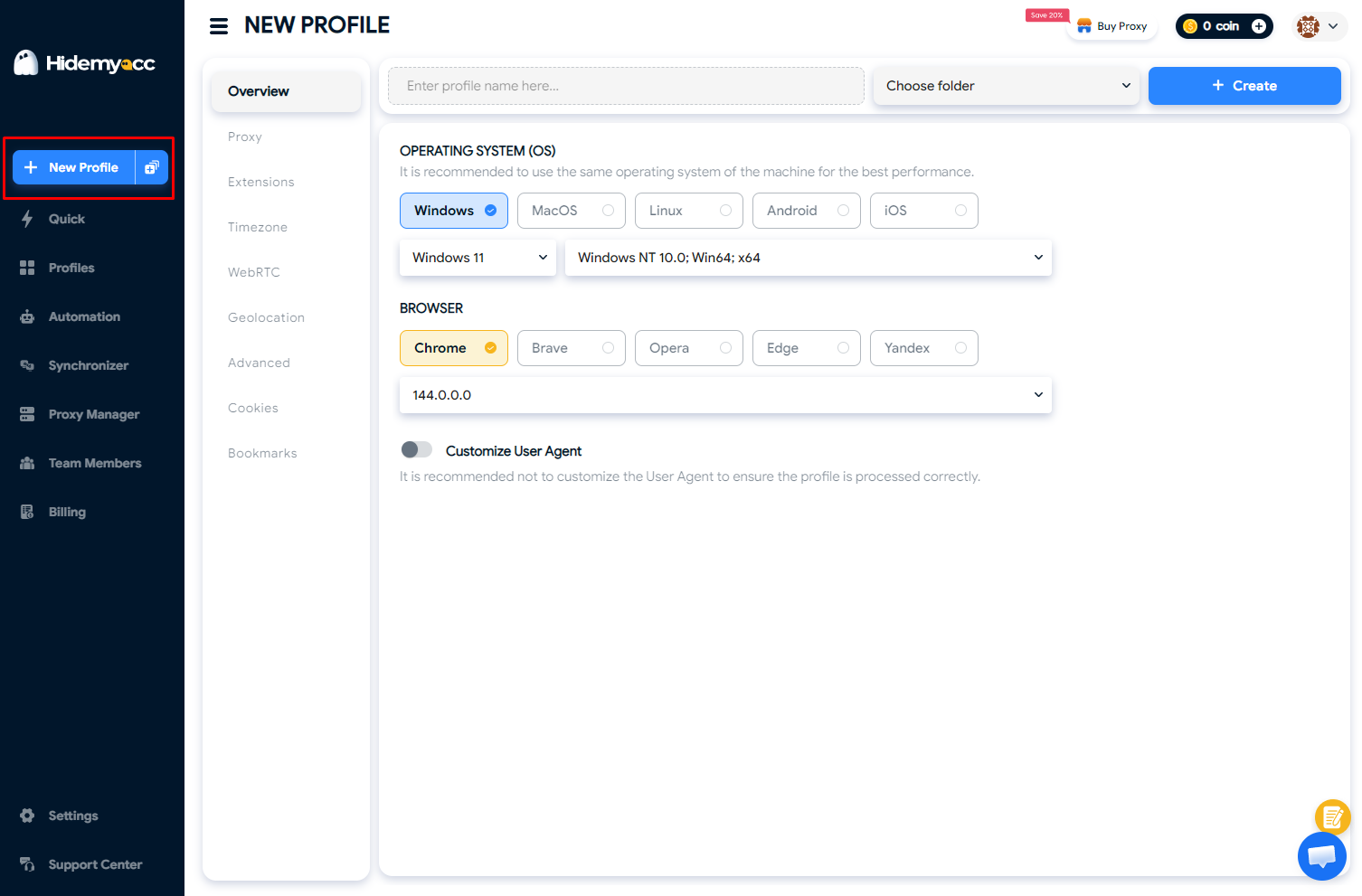Đây là bước quan trọng để tránh bị hệ thống fingerprint phát hiện bất thường.